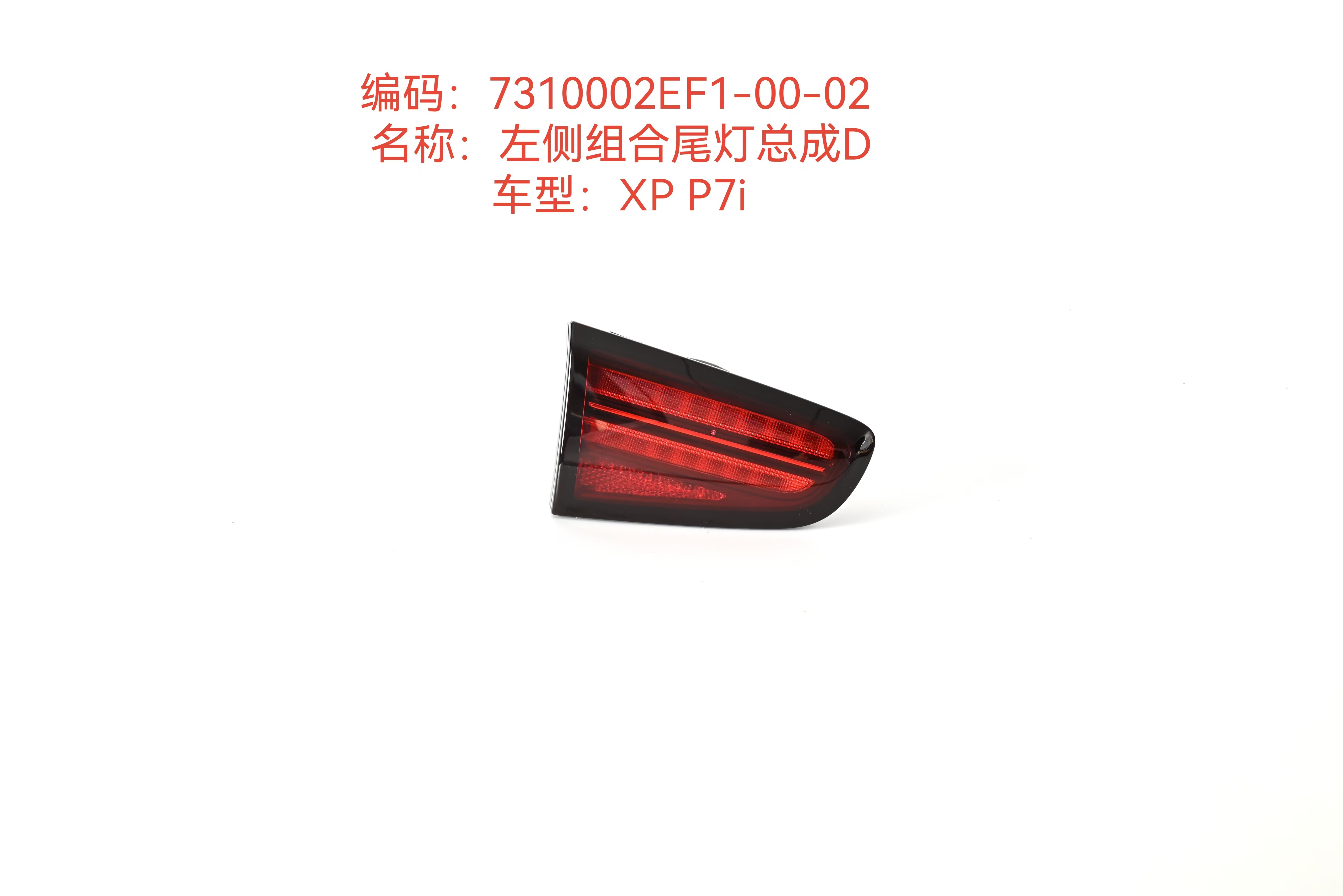 샤오펑 P7I 좌측 콤비네이션 테일라이트 어셈블리(부품 번호: 7310002EF1-00-02)는 차량 후면 조명 시스템의 중요한 구성 요소입니다. 이 OEM 품질 어셈블리는 안전성과 차량 미학을 향상시키는 고급 디자인 요소와 필수 조명 기능을 결합합니다.